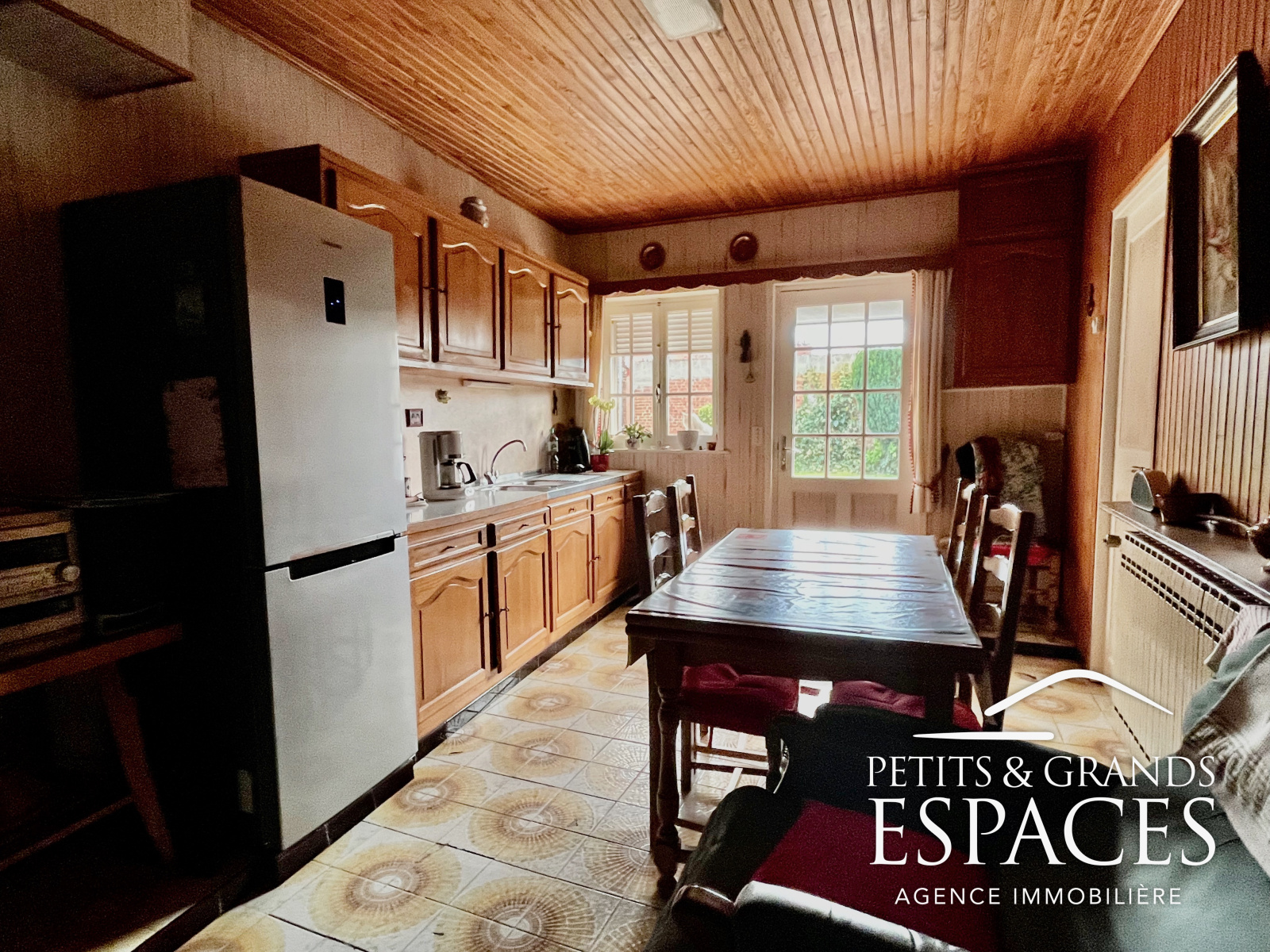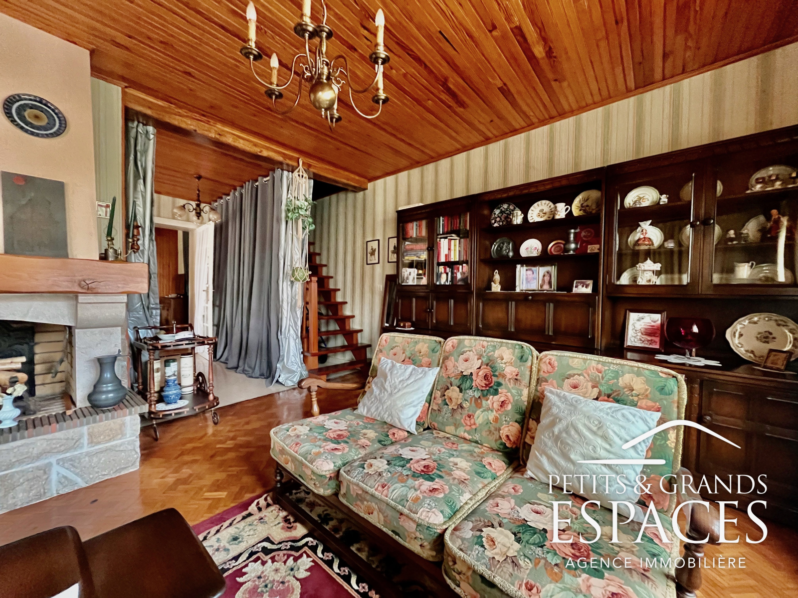 Construction années 1920 en briques cimentées et tuiles terre cuite, menuiseries bois simple vitrage, volets roulants, chaudière mixte gaz / bois,