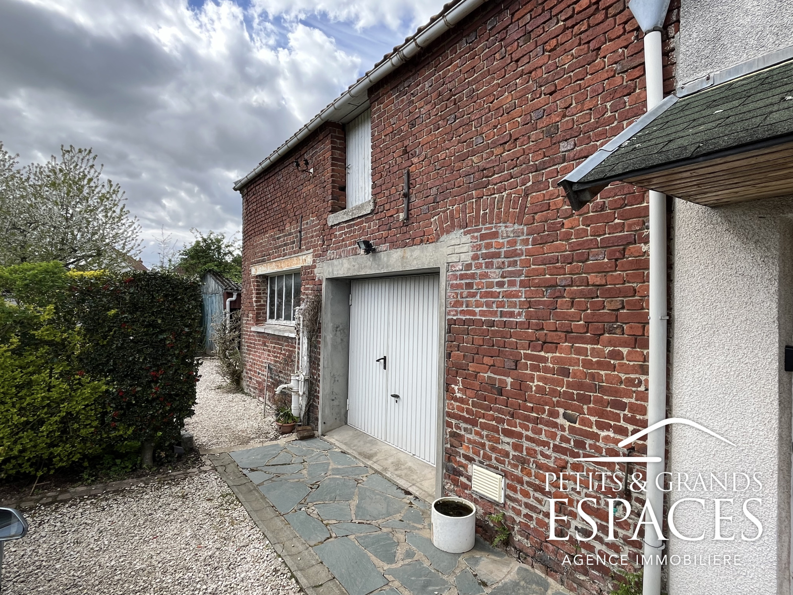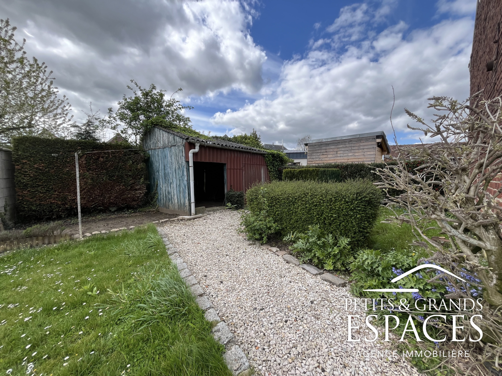 - A l'extérieur : allée pour stationnement 4 véhicules, espace pelouse, abri de jardin.