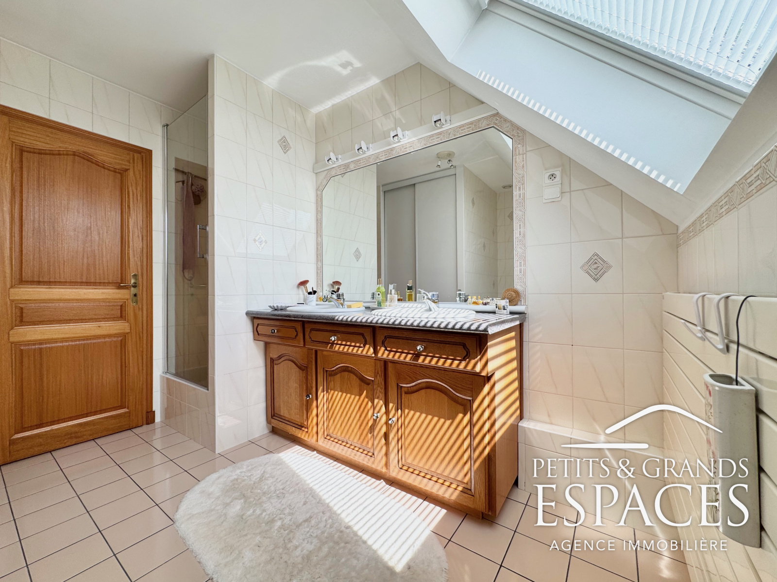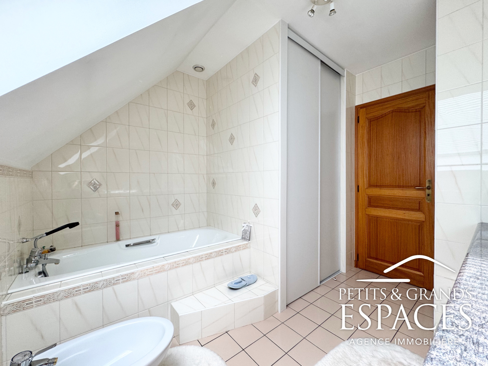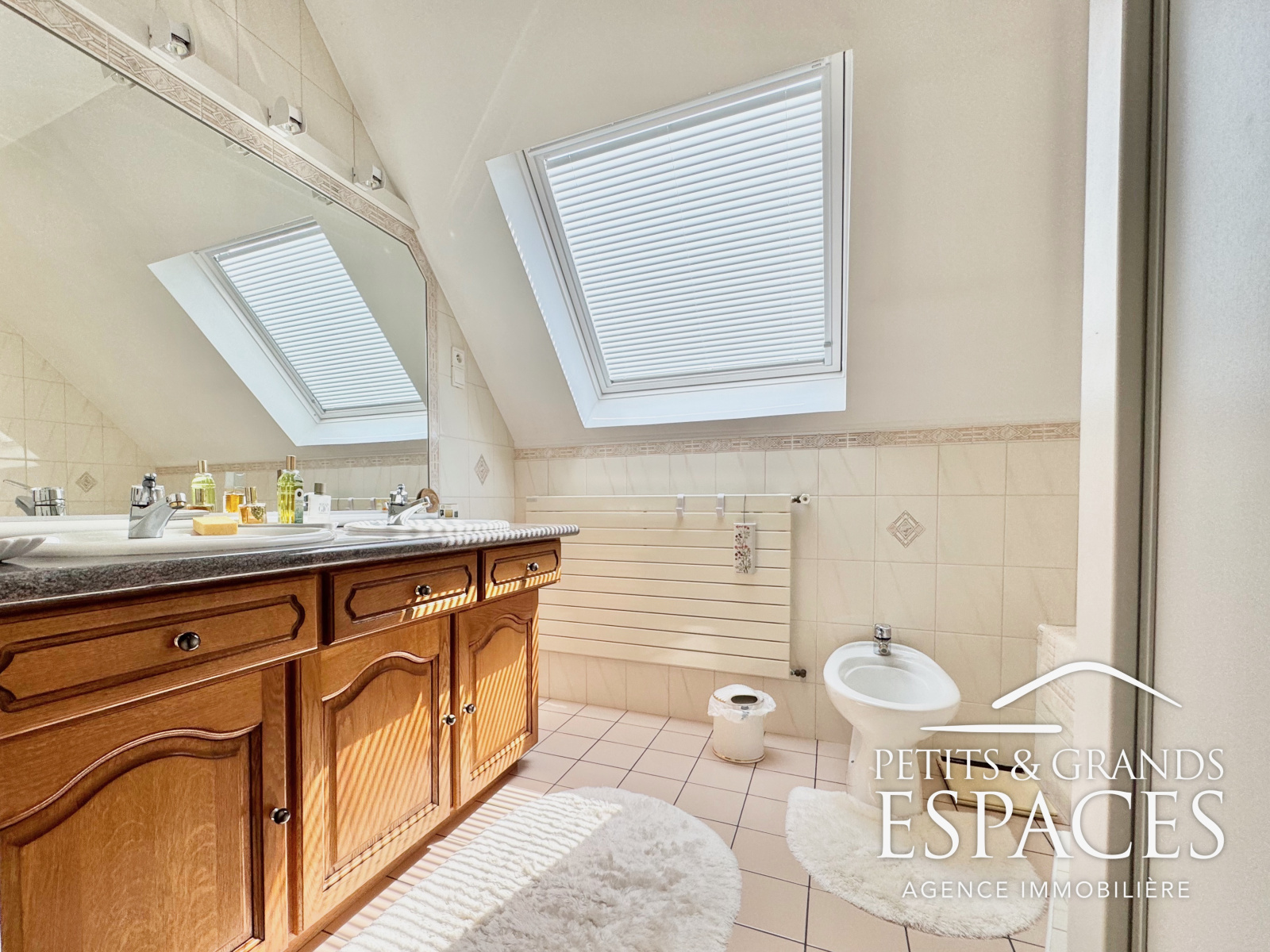 Palier, 3 chambres confortables, salle de bain avec baignoire, douche, double vasque, bidet et WC (volet solaire motorisé)