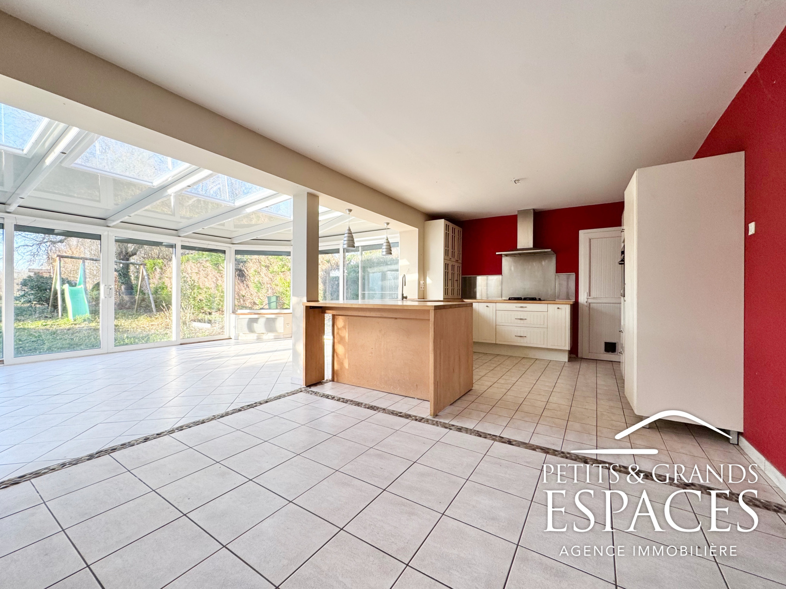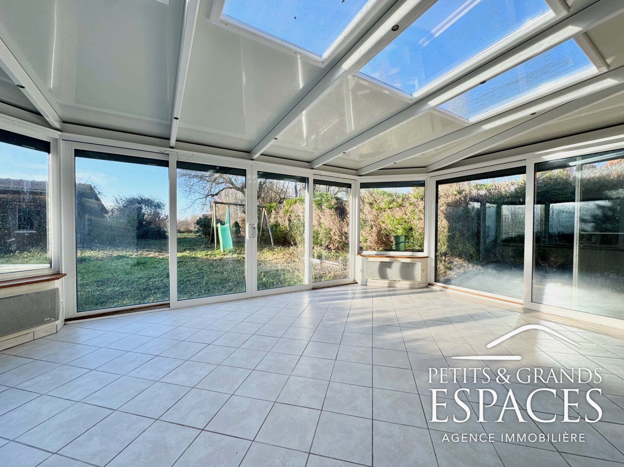 Implantée dans un environnement résidentiel calme et verdoyant, cette maison individuelle construite en 1991 développe une surface habitable d’environ 128 m², édifiée sur une parcelle de 1 030 m² clôturée et bénéficiant d’une exposition ouest.